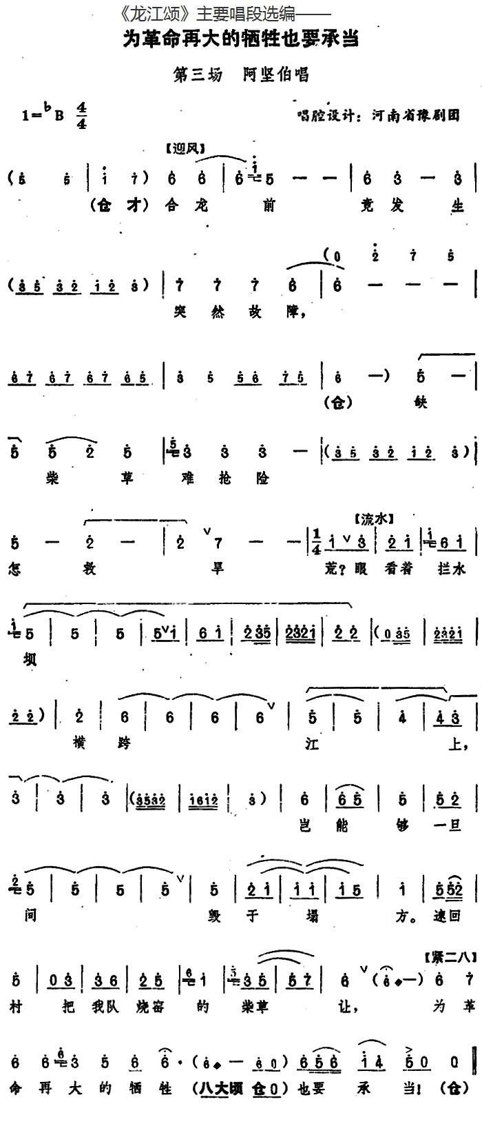 > 龙江颂 主要唱段选编 为革命再大的牺牲也要承当 第三场 阿坚伯唱 唱腔设计 河南省豫剧团