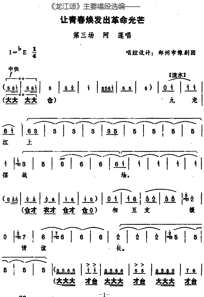 > 龙江颂 主要唱段选编 让青春焕发出革命光芒 第三场 阿莲唱 唱腔设计 郑州市豫剧团