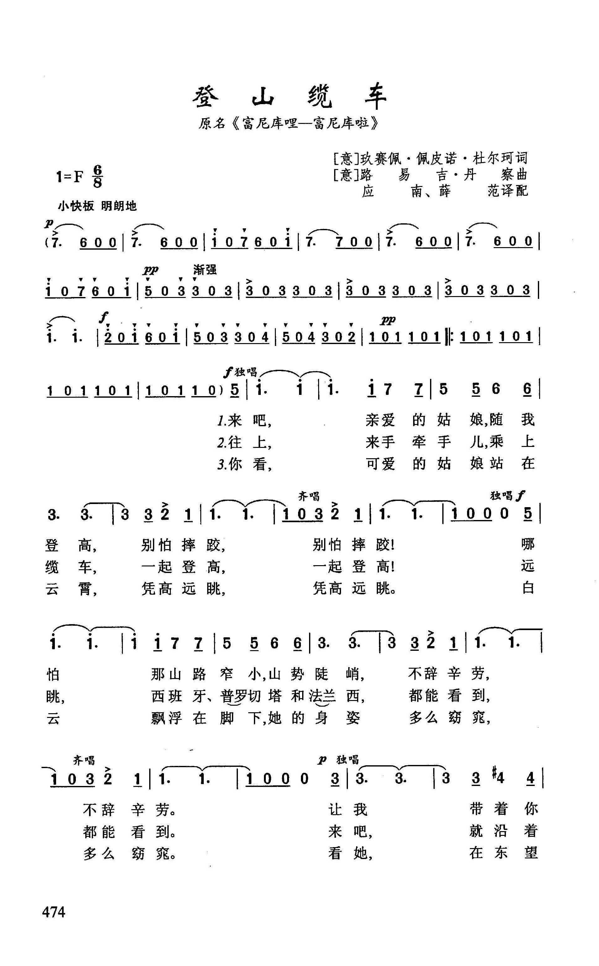 - [歌谱] 意 登山缆车 又名 缆车 降E调