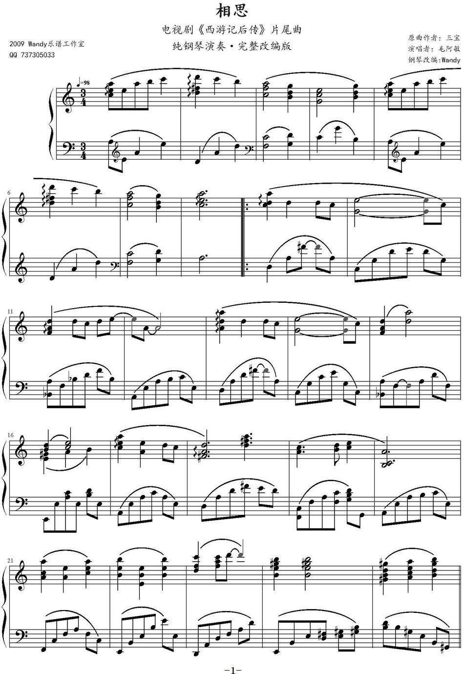相思 电视剧 西游记后传 片尾曲