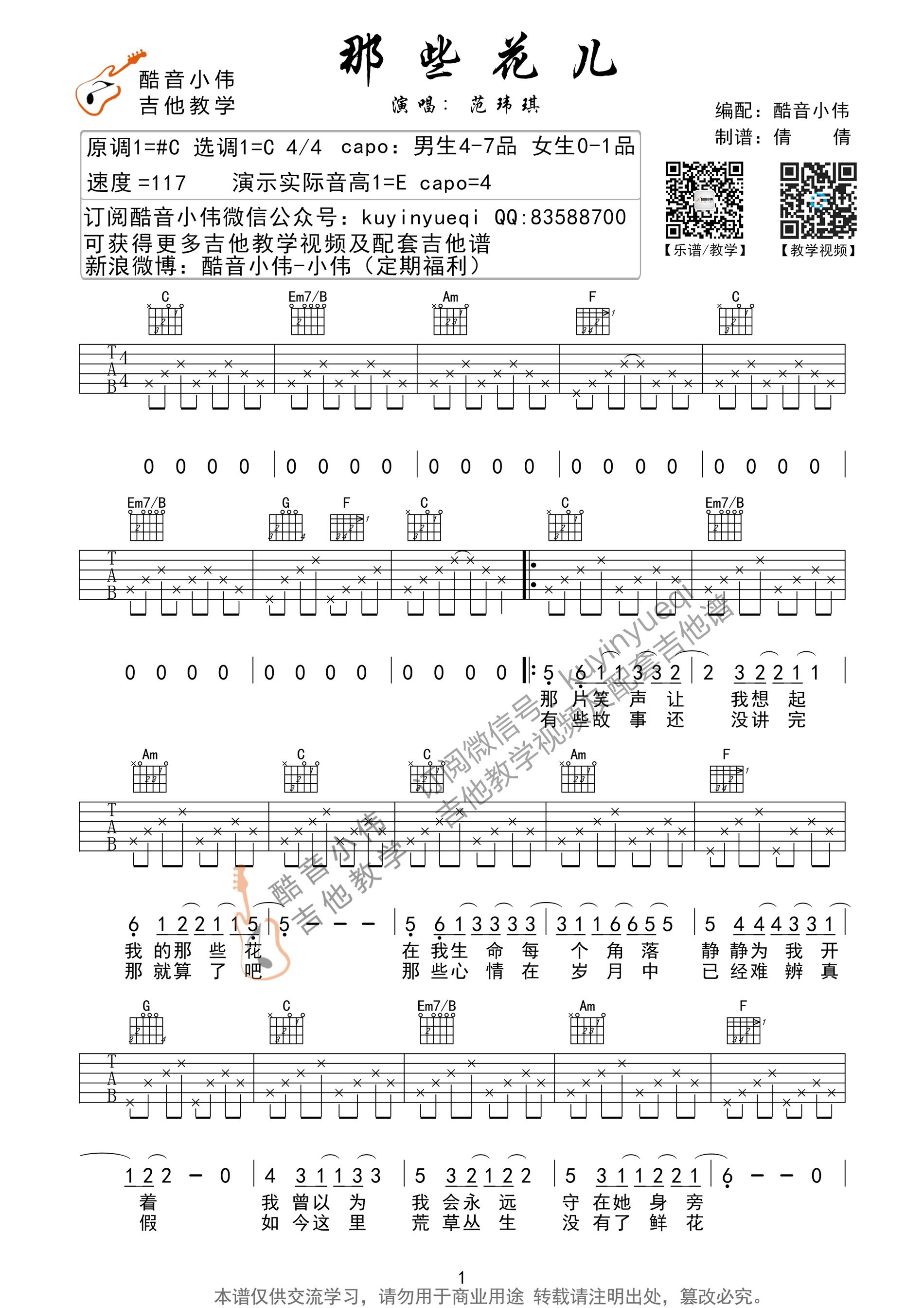 - [歌谱,吉他谱] 那些花儿