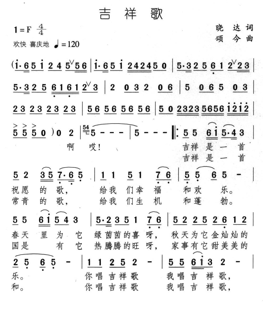 - [歌谱] 吉祥歌 颂今曲