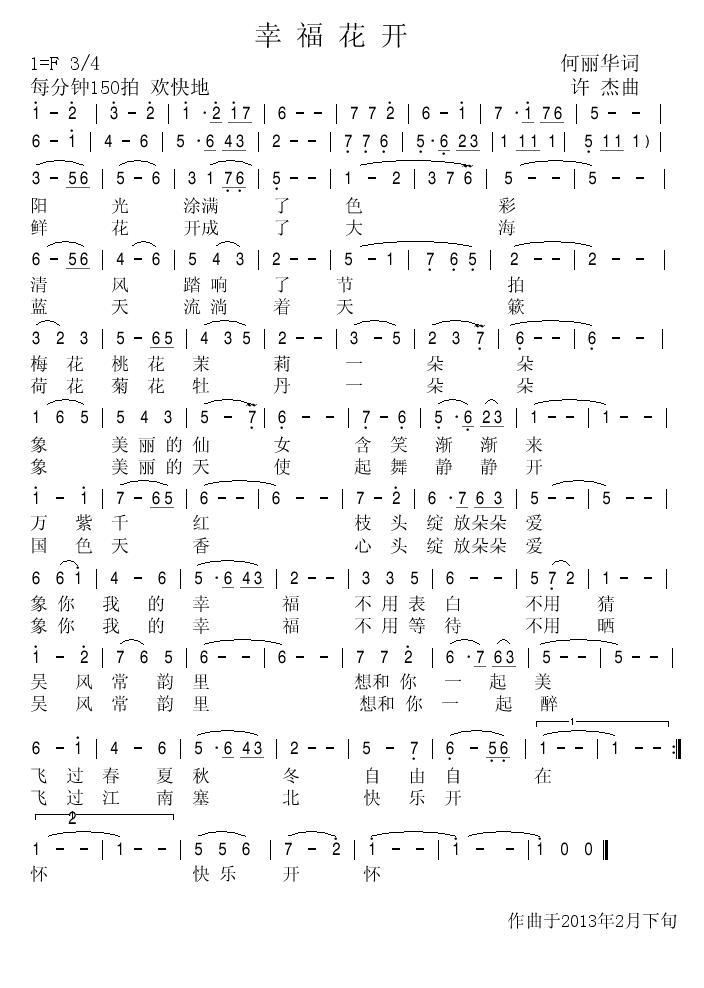 - [歌谱] 幸福花开 朱才勇曲