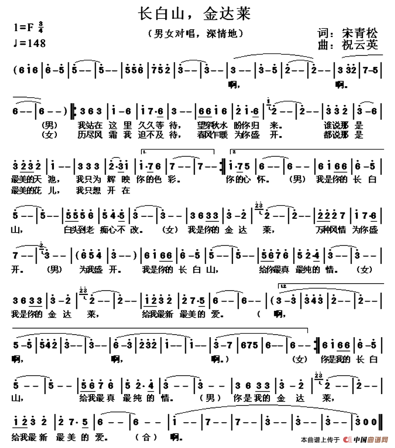- [歌谱] 情系长白山