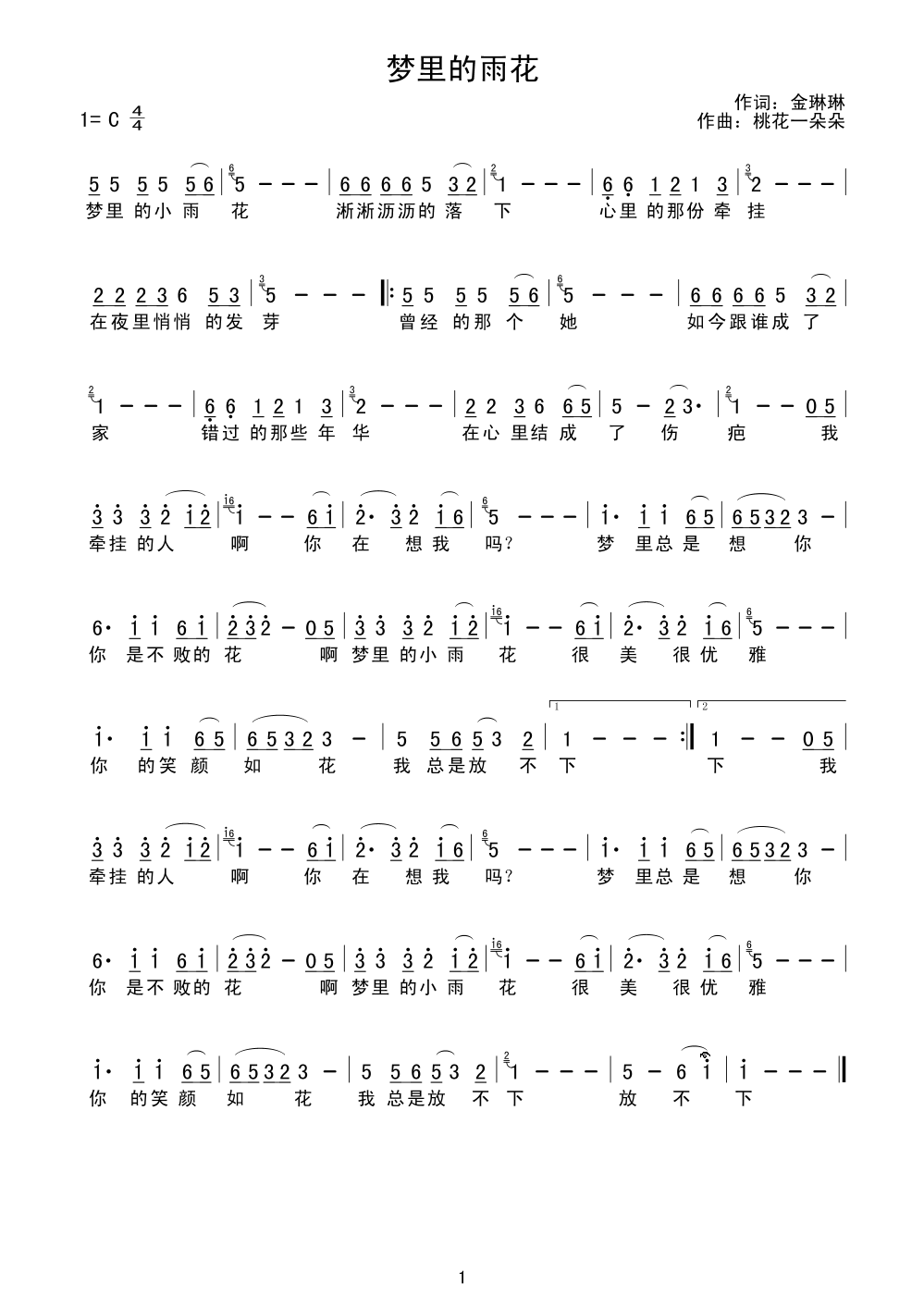 - [歌谱] 妈妈是世上最美的花 网络原创