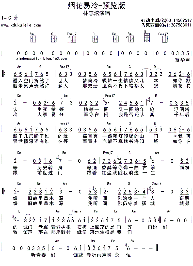 烟花易冷 ukulele四