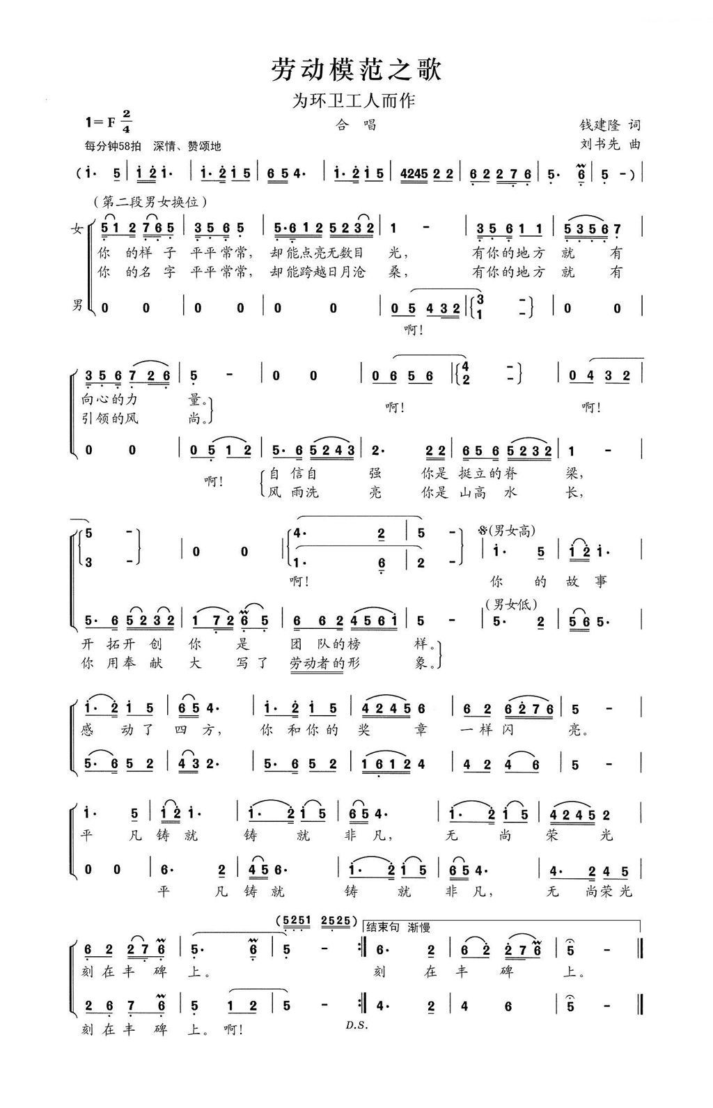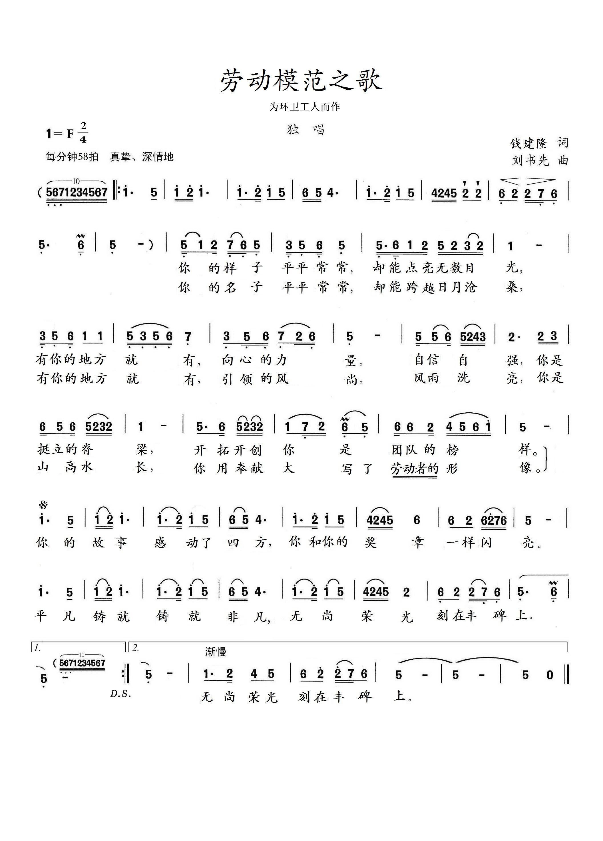 > 劳动模范之歌 为环卫工人而作