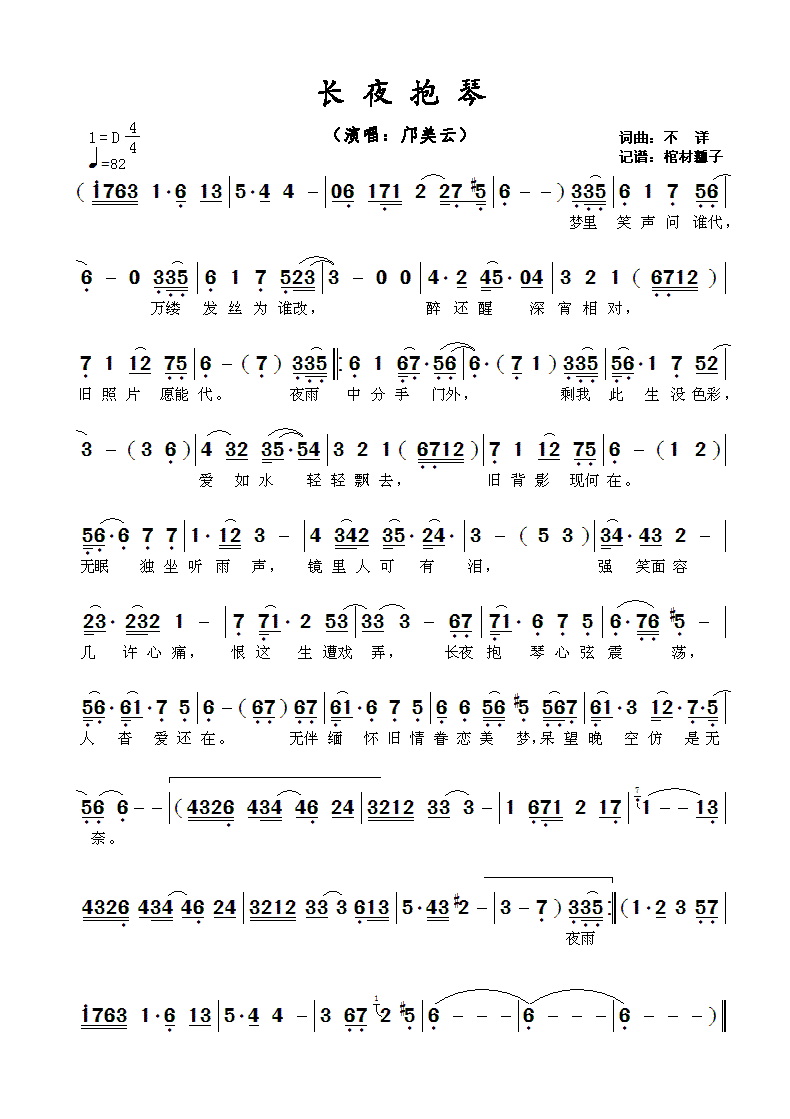 - [歌谱] 长夜吟