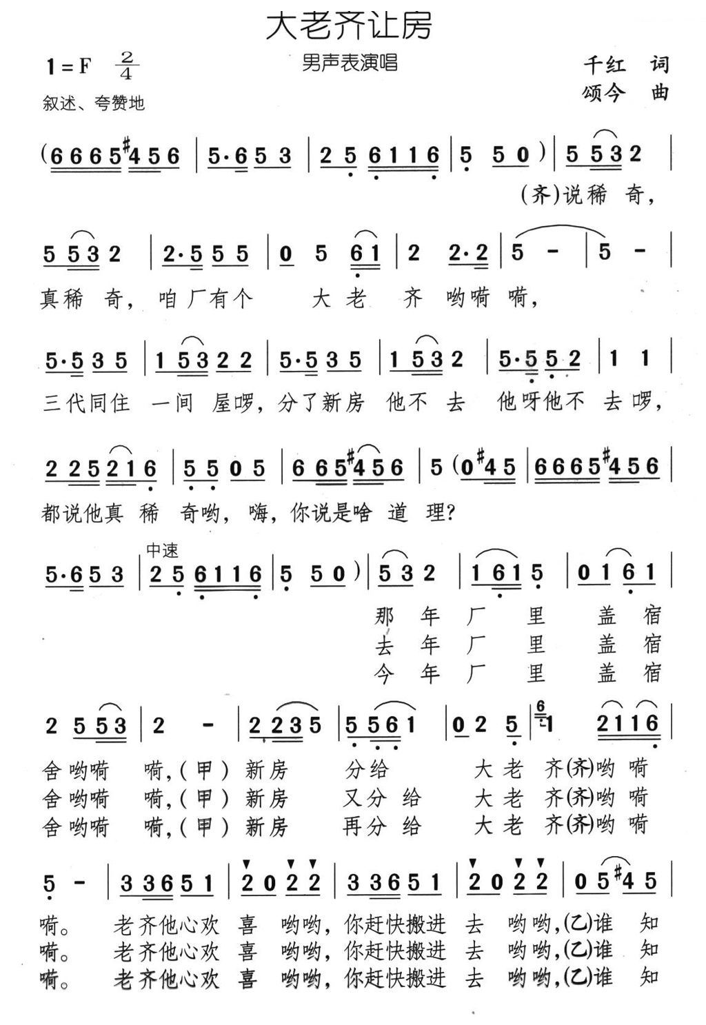 大老齐让房 男声表演唱
