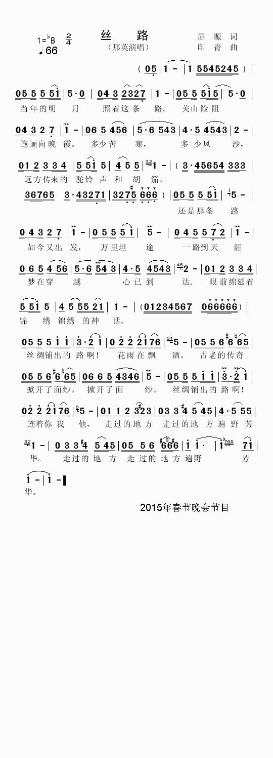 - [歌谱] 丝路 2015年央视春晚歌曲