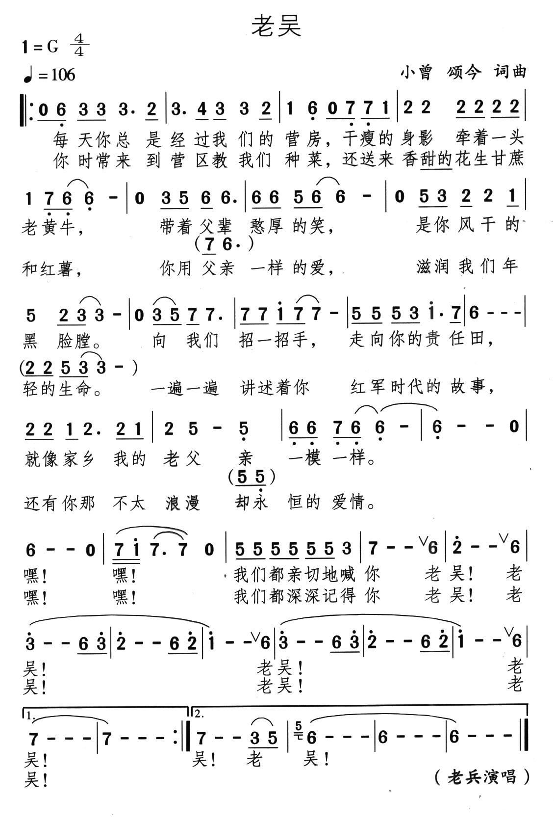- [歌谱] 老吴
