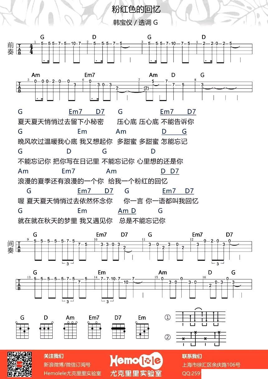 粉红色的回忆 尤克里里谱