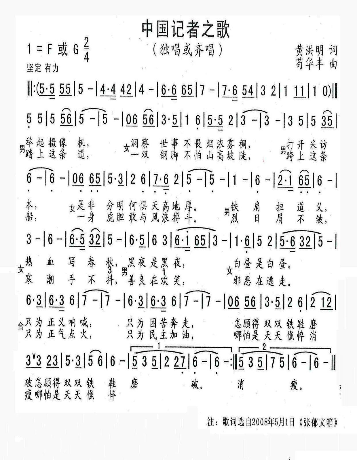 > 中国记者之歌