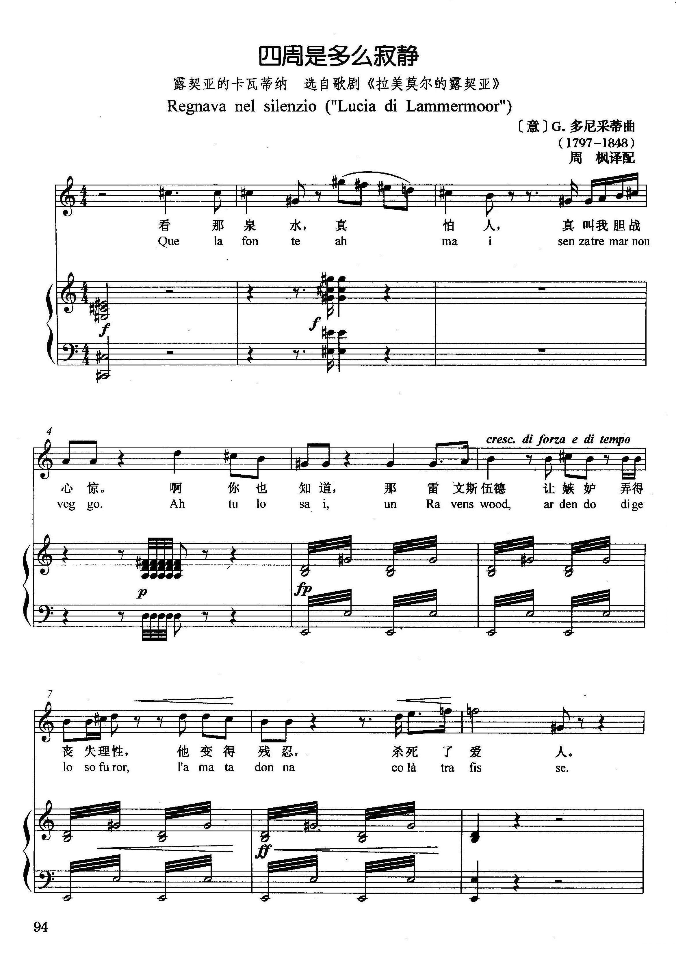 意 四周是多么寂静 选自歌剧 拉美莫尔的露契亚