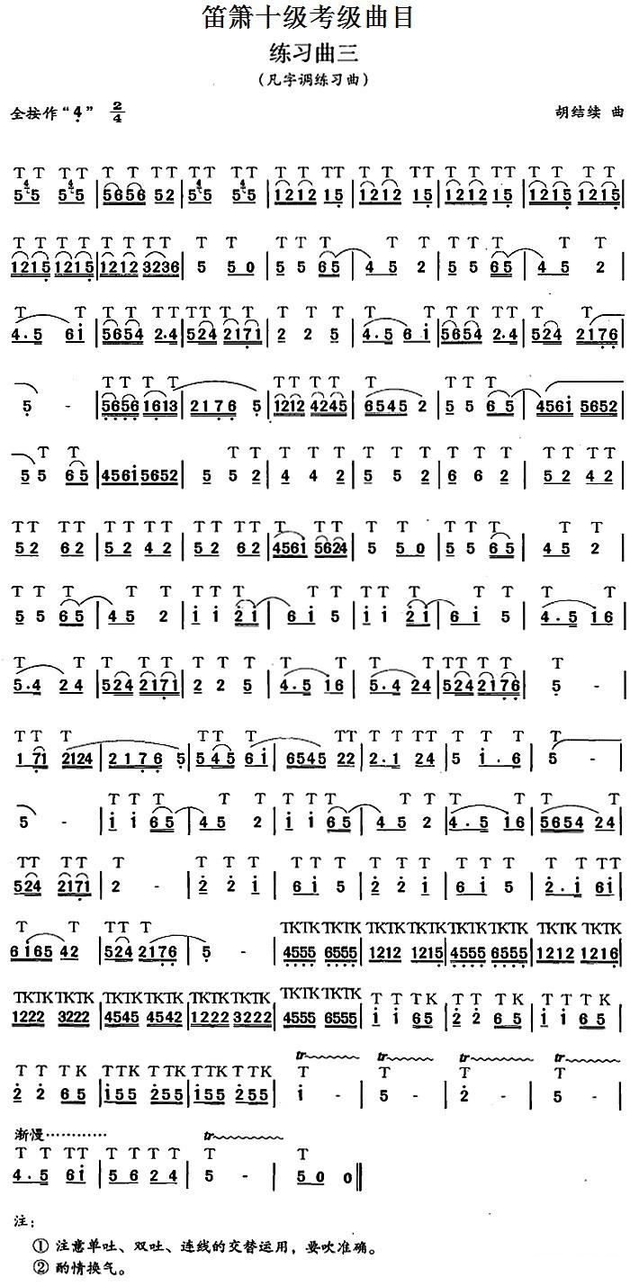 笛箫十级考级曲目 练习曲三 凡字调练习曲