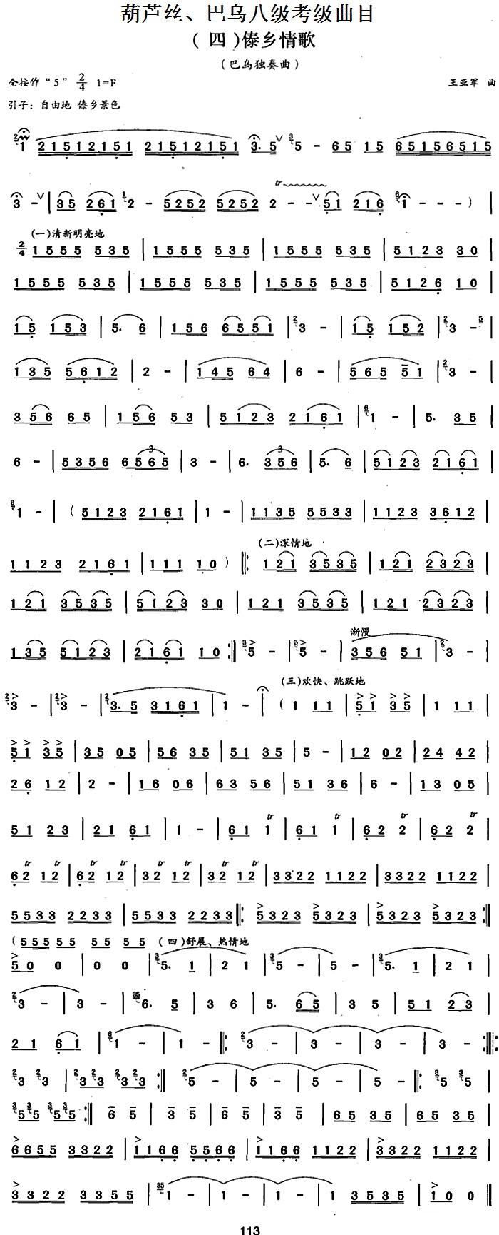 > 葫芦丝 巴乌八级考级曲目 傣乡情歌