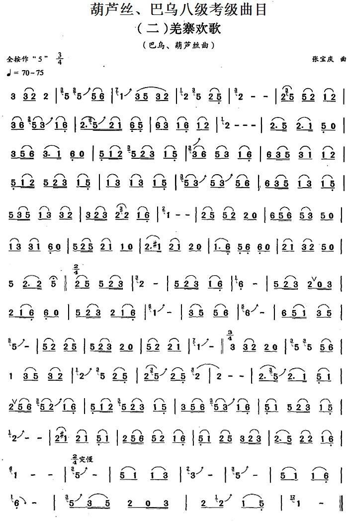 > 葫芦丝 巴乌八级考级曲目 羌寨欢歌