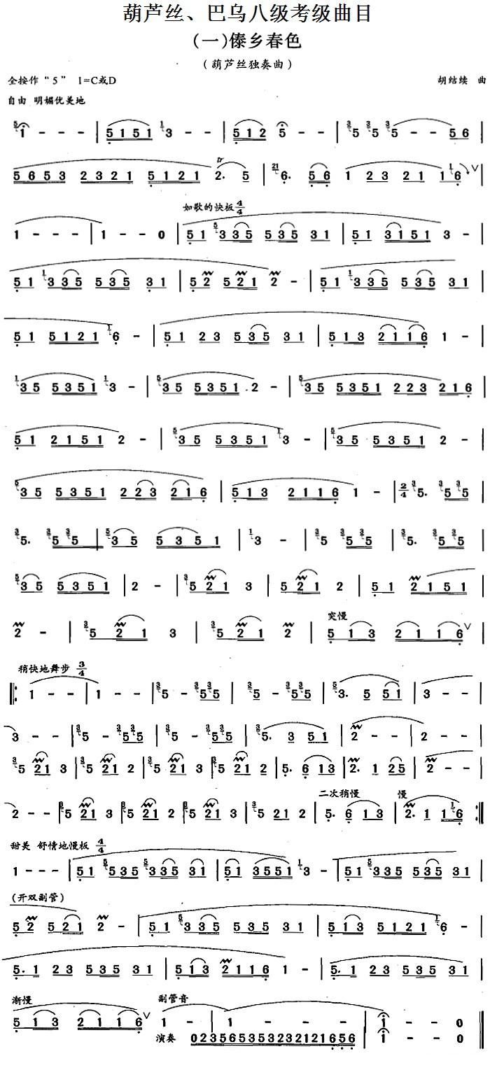 > 葫芦丝 巴乌八级考级曲目 傣乡春色