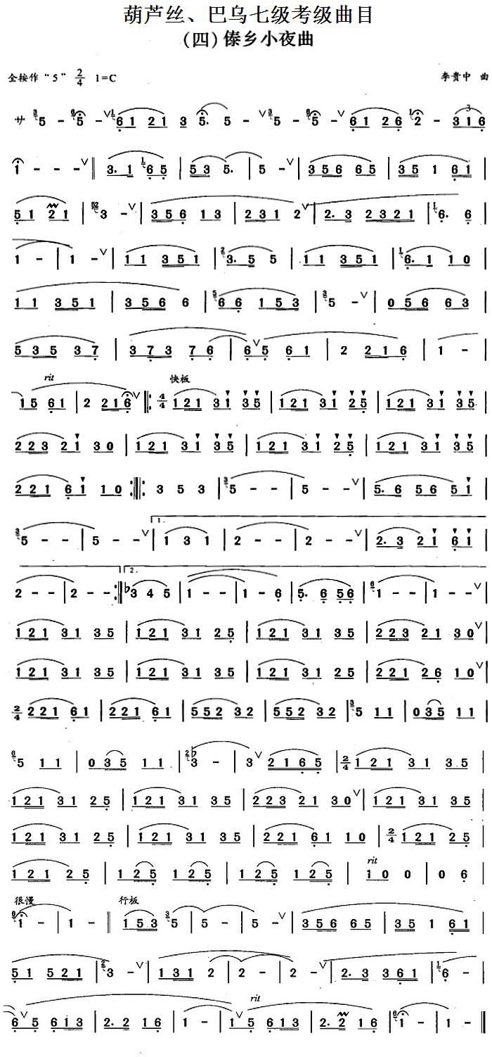 > 葫芦丝 巴乌七级考级曲目 傣乡小夜曲