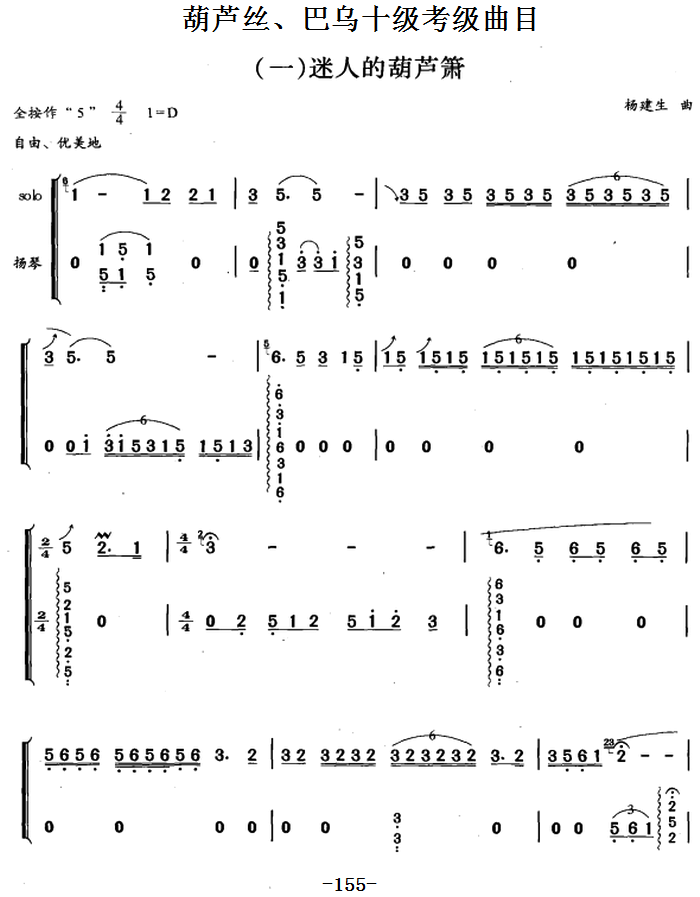 > 葫芦丝 巴乌十级考级曲目 迷人的葫芦箫