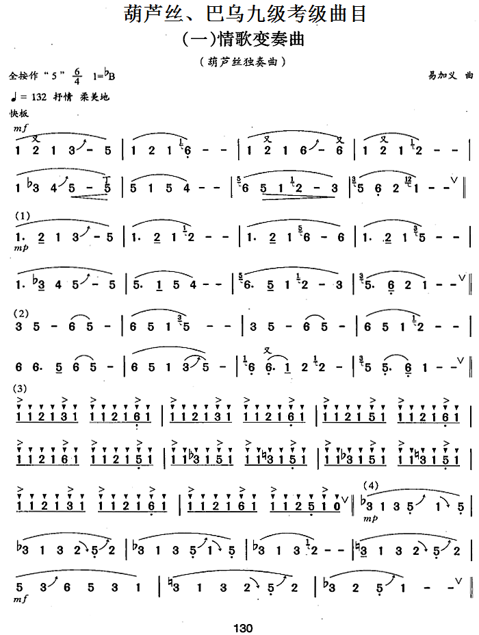葫芦丝 巴乌九级考级曲目 情歌变奏曲