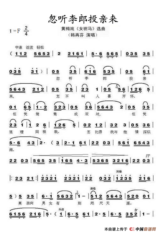 > 忽听李郎投亲来 黄梅戏 女驸马 选段