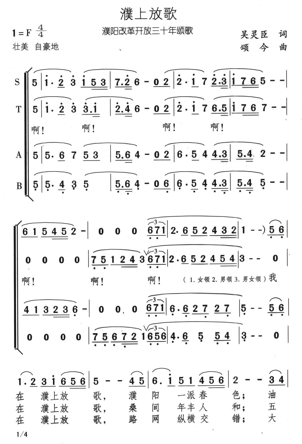 - [歌谱] 放歌草原上