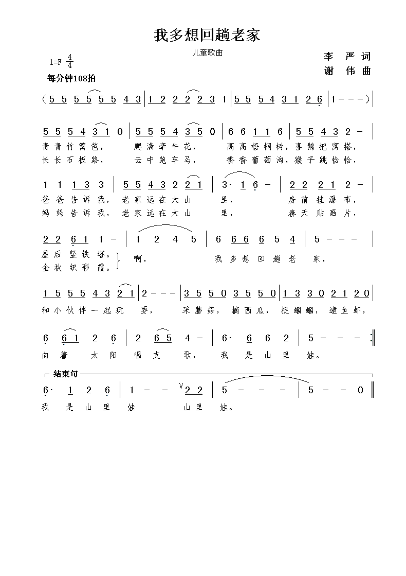 - [歌谱] 我的老家