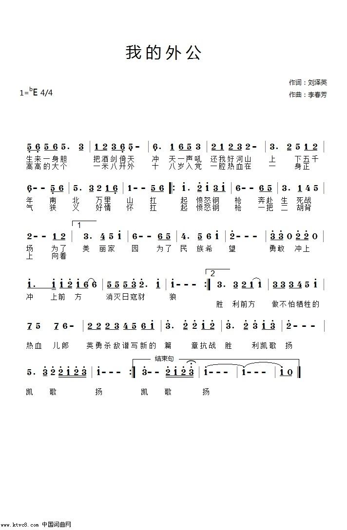 - [歌谱] 台湾的满外公回来了 刘婉萍