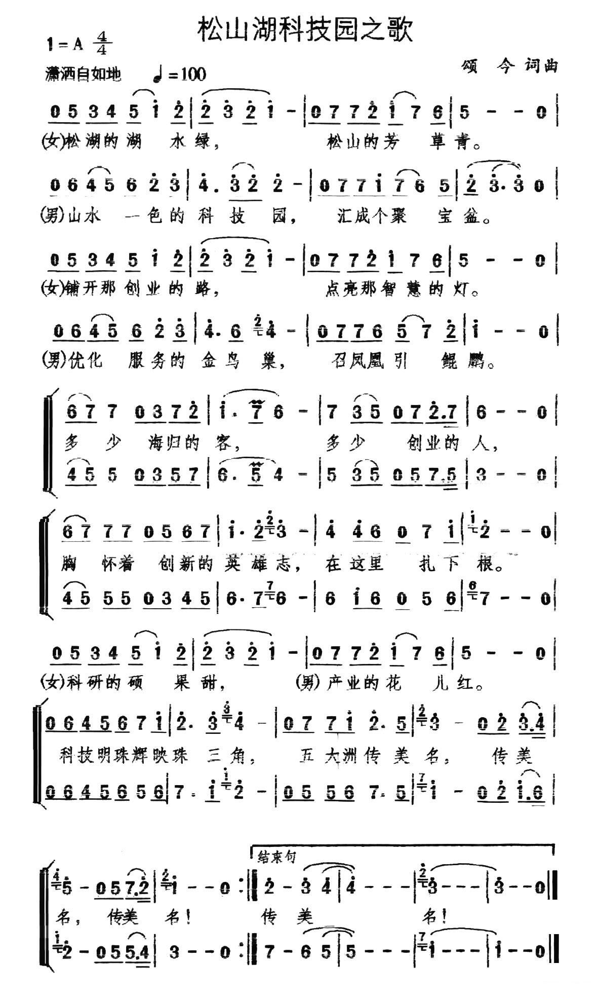 - [歌谱] 松山湖之歌