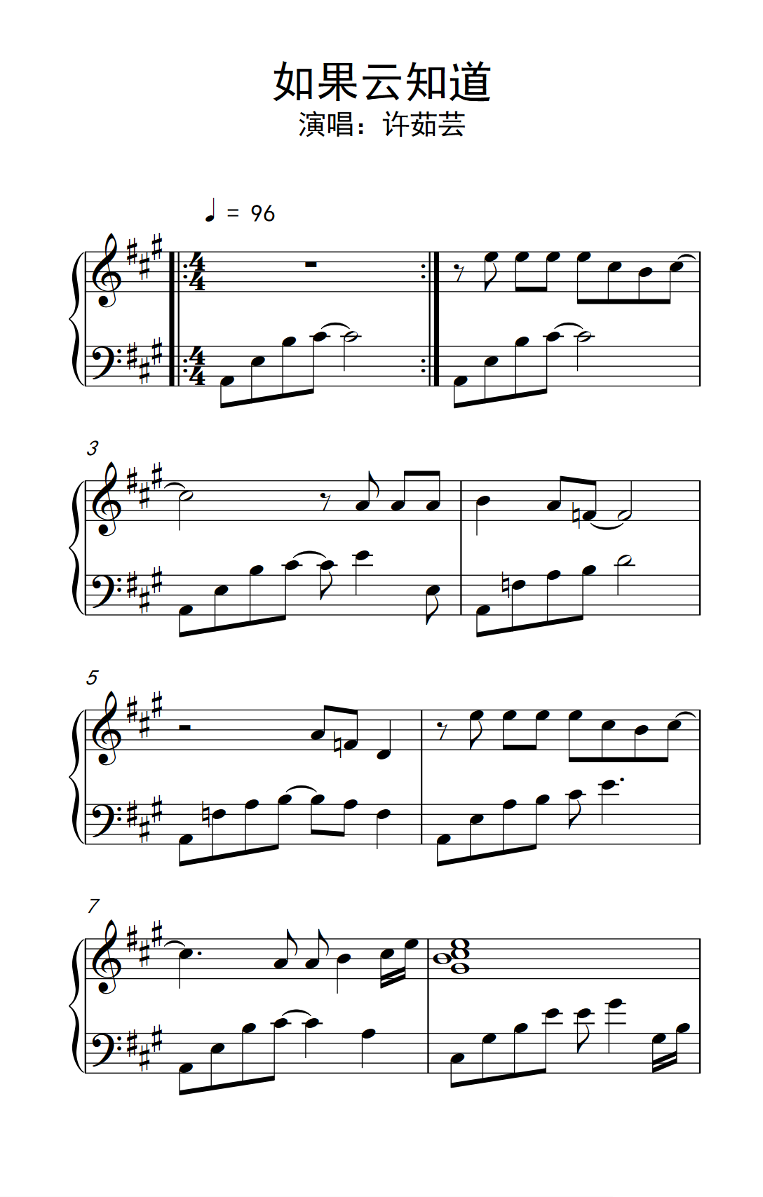 - [笛子谱,歌谱,箫谱] 如果云知道 许茹芸