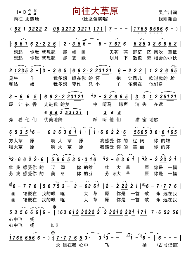 - [歌谱] 向往草原
