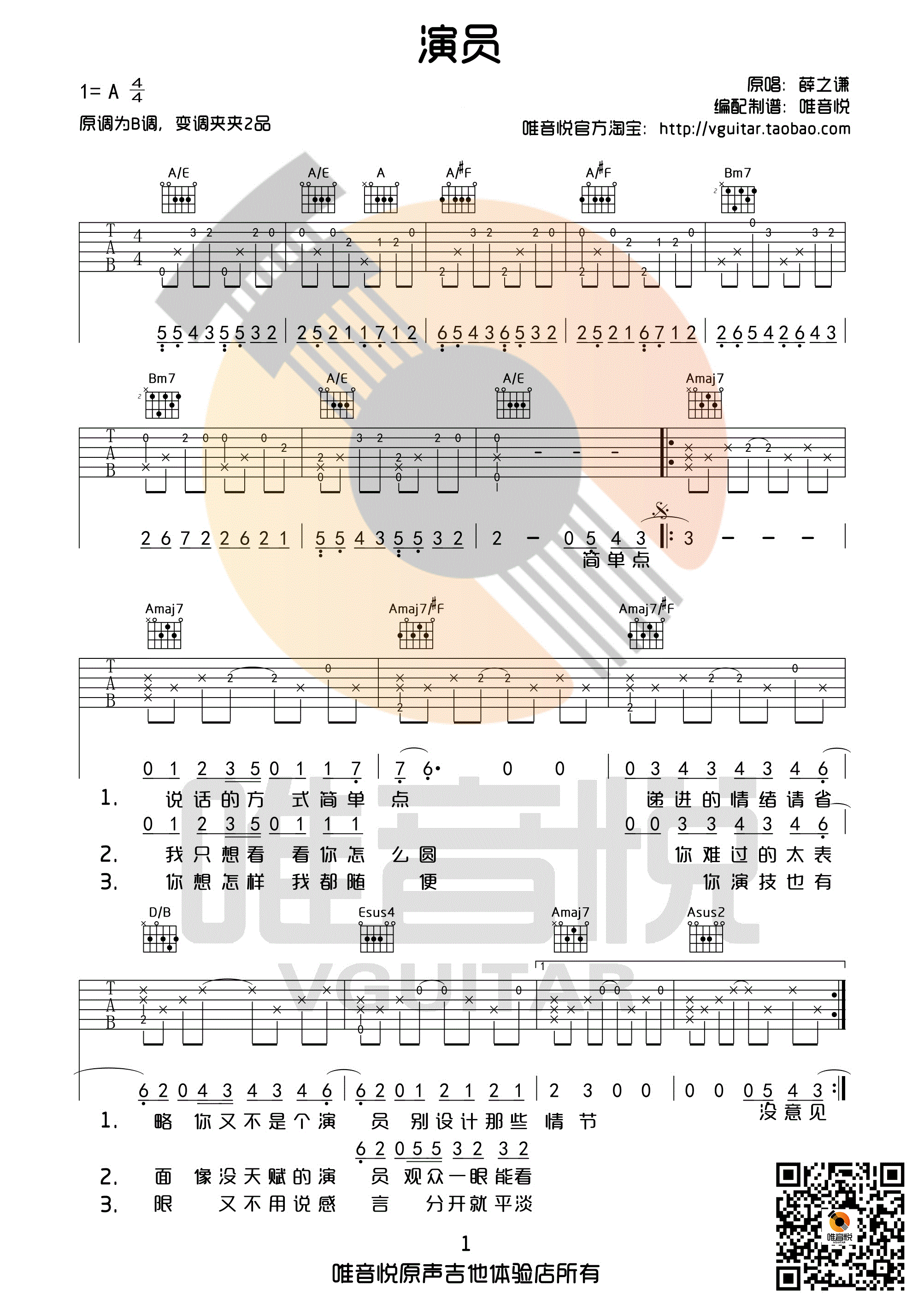 演员 薛之谦原版C调轻松弹唱 酷音小伟编谱