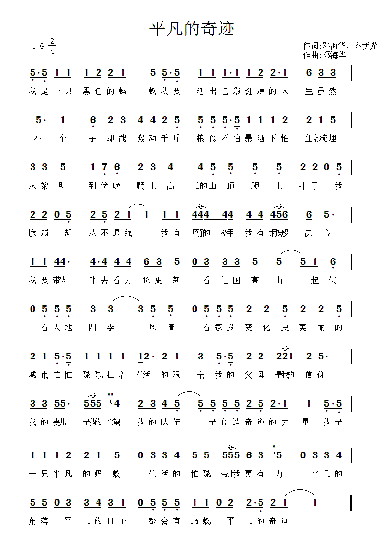 - [歌谱] 奇迹