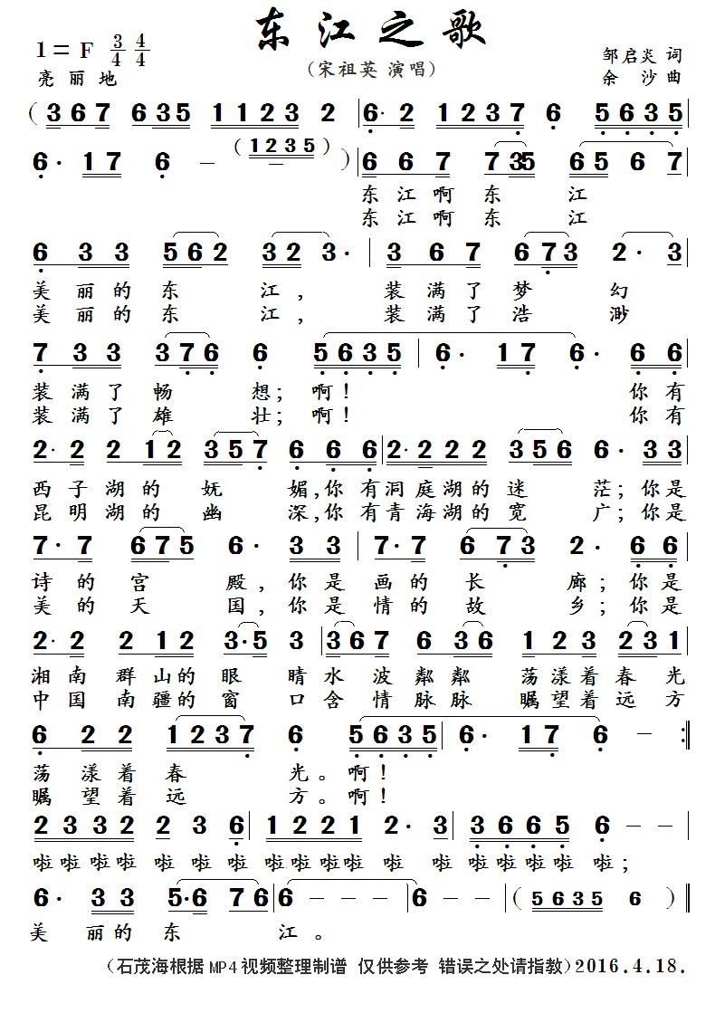 - [歌谱] 珠江之歌 宋祖英
