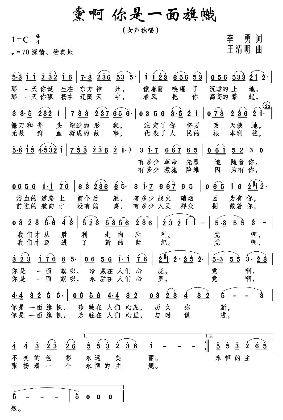 > 党啊 你是一面旗帜 又名 党啊 你是一面旗帜
