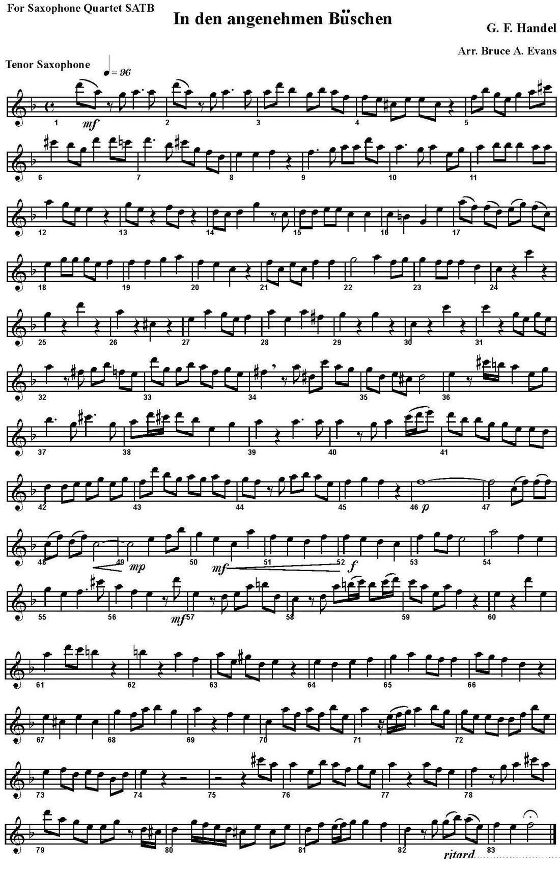 In den angenehmen Buschen 四重奏 次中音萨克斯
