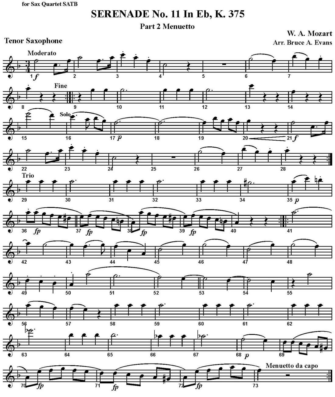 SERENADE No 11 in Eb K 375 Part 2 Menuetto 四重奏 次中音萨克斯