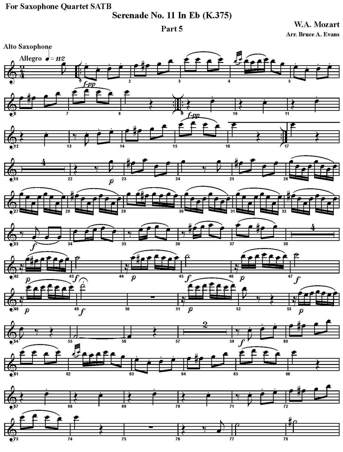 > SERENADE No 11 in Eb K 375 Part 5 四重奏 中音萨克斯