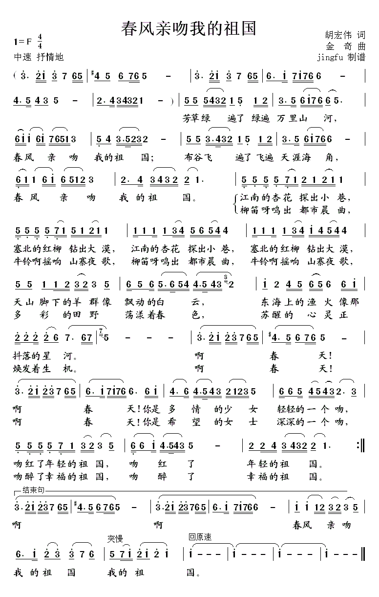 > 春风亲吻我的祖国