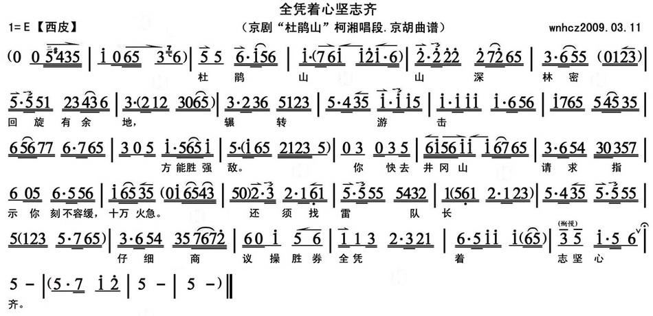 > 全凭着心坚志齐 杜鹃山 柯湘唱段 京胡