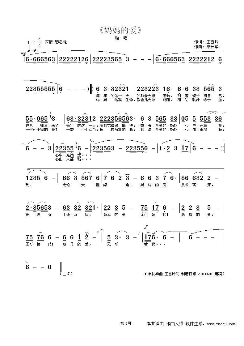 妈妈的爱 单长华曲 编唱录混