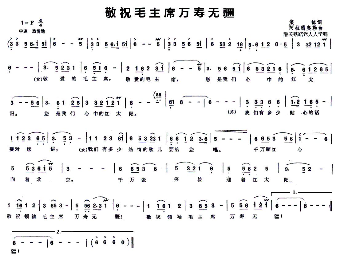 > 敬祝毛主席万寿无疆