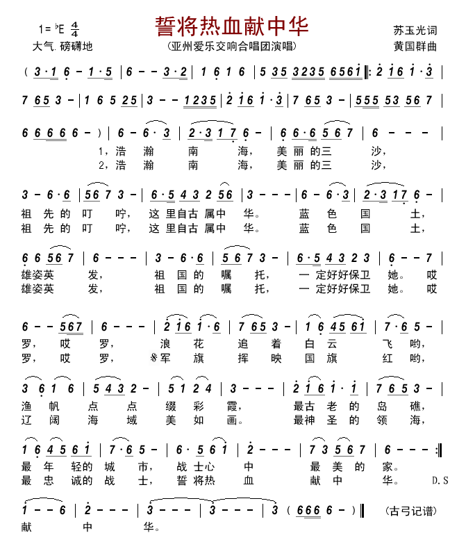 > 誓将热血献中华