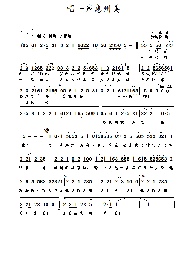 > 唱一声惠州美
