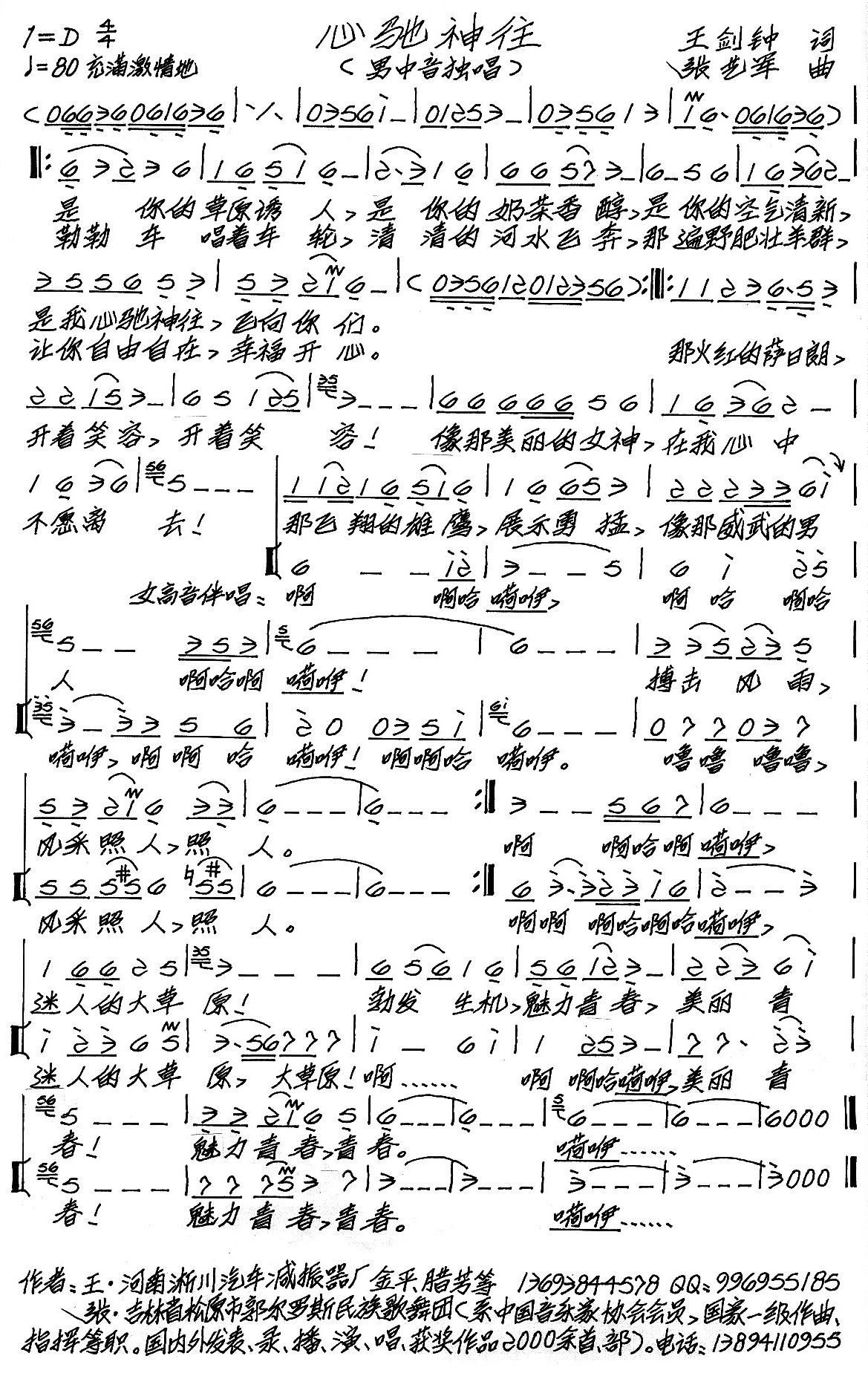 - [歌谱] 心驰神往