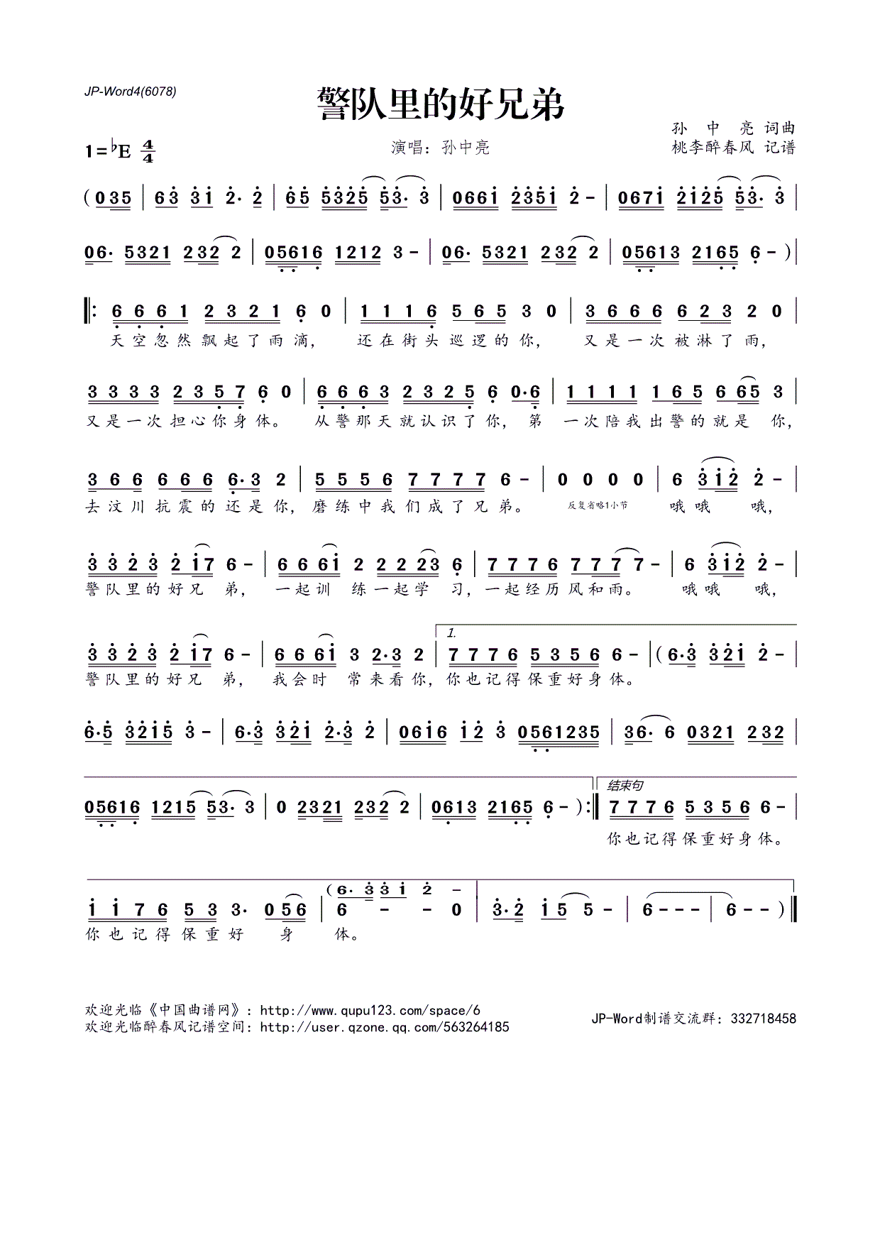 - [歌谱] 兄弟