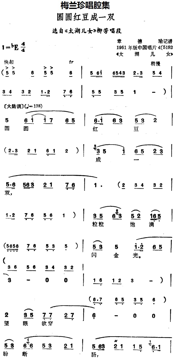 锡剧 梅兰珍唱腔集 圆圆红豆成一双 选自 太湖儿女 柳芳唱段