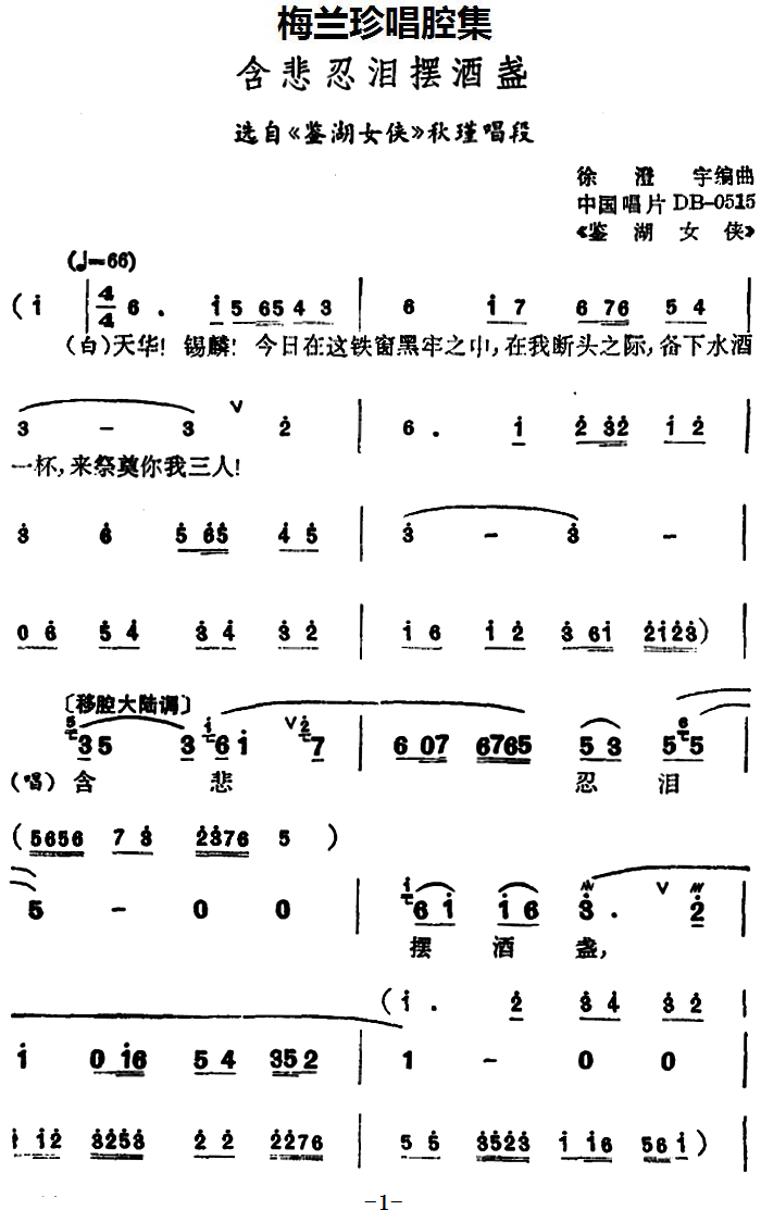 锡剧 梅兰珍唱腔集 含悲忍泪摆酒盏 选自 鉴湖女侠 秋瑾唱段