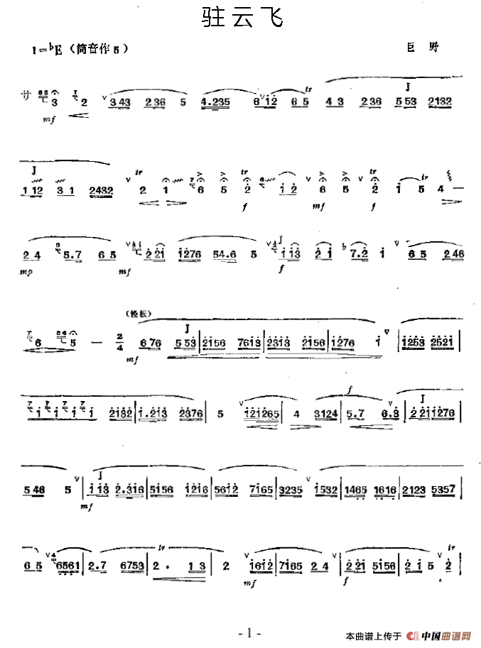 - [笛子谱,箫谱] 驻云飞 民乐类 竹笛